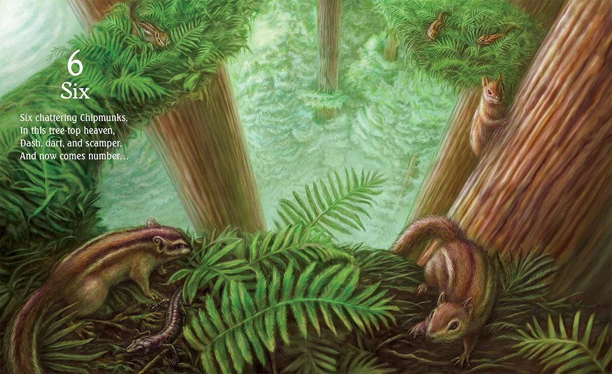 Tall Tall Tree (continued). Although the illustrations are breathtaking, my only problem is that young children who are learning to count for the first time will have trouble finding all the animals they are supposed to count. Older children will appreciate this challenge, and will even find some hidden creatures on each page that are described at the end of the book. At the end of the day, this book is more about nature appreciation than counting, but I still like to include it in my counting books repertoire.