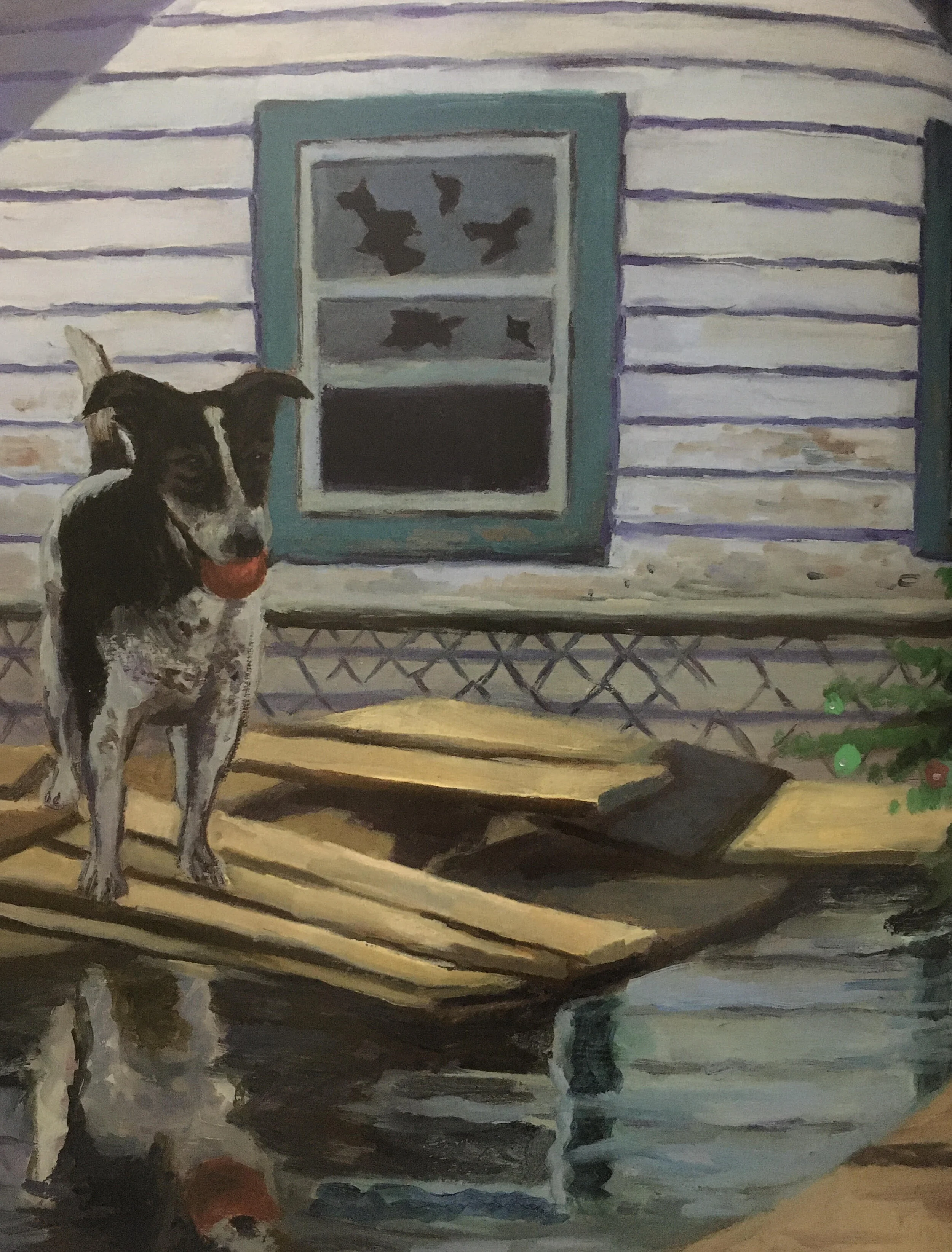 The story follows Louis as his family journeys through the flooded streets towards the Superdome which serves as temporary shelter. On the way Louis worries about gators, about his house, and about a little black and white dog he noticed that was stranded on a piece of porch.